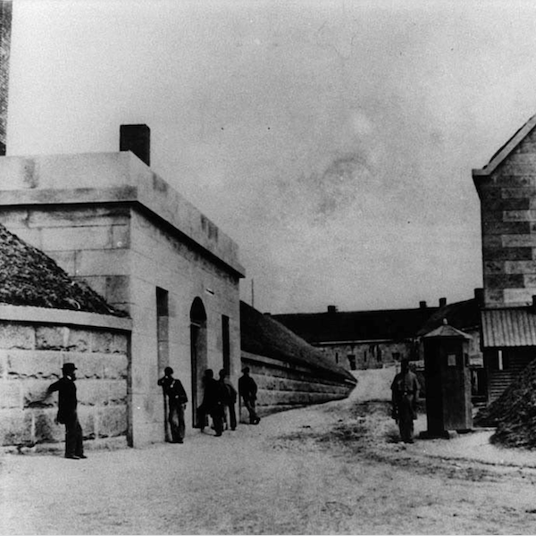The large pentagonal bastion fort was built with granite and other stone quarried from Quincy and Cape Ann. It was all but finished by 1858, but when the Civil War broke out in April 1861, there was still construction debris on the parade ground and no guns were mounted. At that point, Massachusetts Governor John Andrew and the Legislature played a critical role in organizing heavy artillery companies to garrison Fort Warren. It was the fifth largest of the 42 third system forts. When complete, the fort has five bastions that increased firepower along the walls. Additional guns were mounted in casemates, interior rooms within the fort’s walls, and fired through openings called embrasures. Guns were also mounted on the terreplein, or roof level, on top of the casemates.